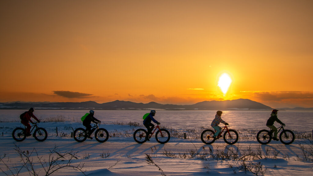 - サロマ湖サンセット:雪が金色に染まる時間。“走る・撮る・感じる”がひとつになります。